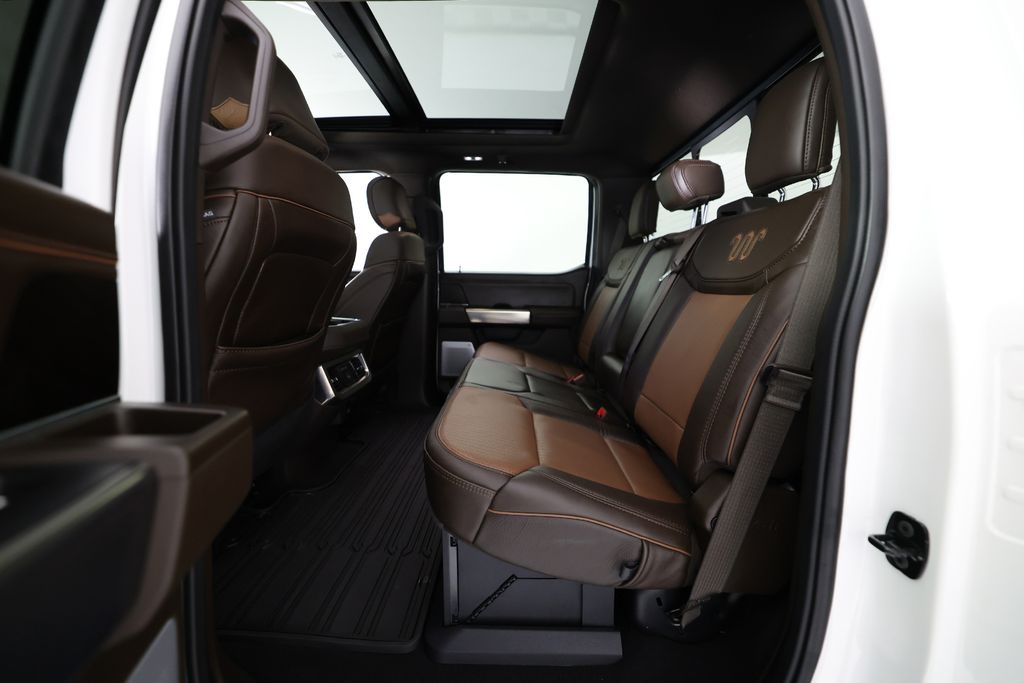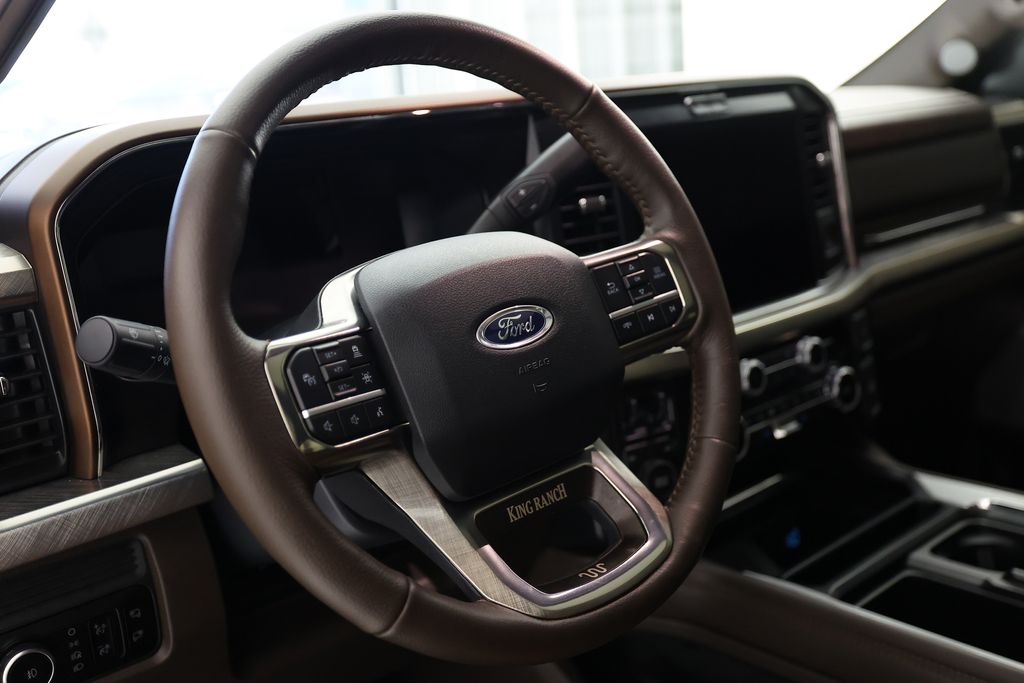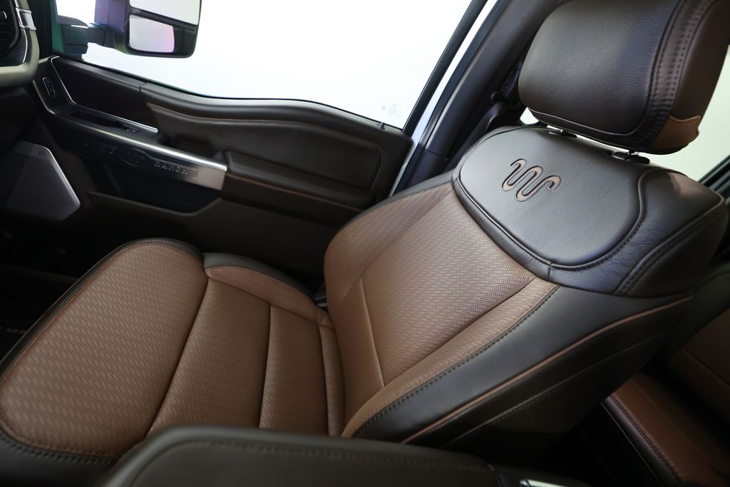 The standout features of this F-250 King Ranch include the Electronic-Locking with 3.31 Axle Ratio, the chrome-accented front and rear bumpers, door handles, and exhaust tip, as well as the unique chrome mirror caps and 20" chrome PVD aluminum wheels. The twin-panel power moonroof adds an extra touch of luxury, allowing you to enjoy the great outdoors from the comfort of your cabin.
