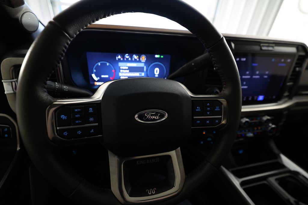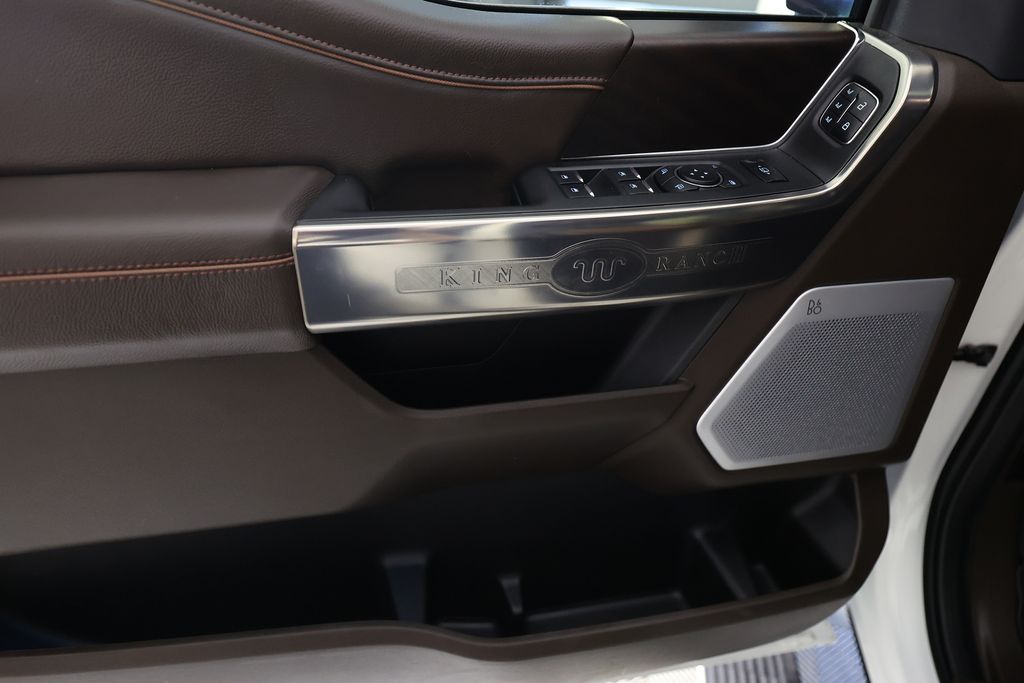 Stepping inside, you'll be greeted by the Unique King Ranch Leather 40/Console/40 Seats, providing exceptional comfort and support. The SYNC 4 with Enhanced Voice Recognition system, 14-speaker B&O Unleashed Sound System, and Heads-Up Display ensure you stay connected and entertained on the road. The FX4 Off-Road Package, with its specialized shock absorbers and skid plates, gives you the confidence to tackle any terrain.