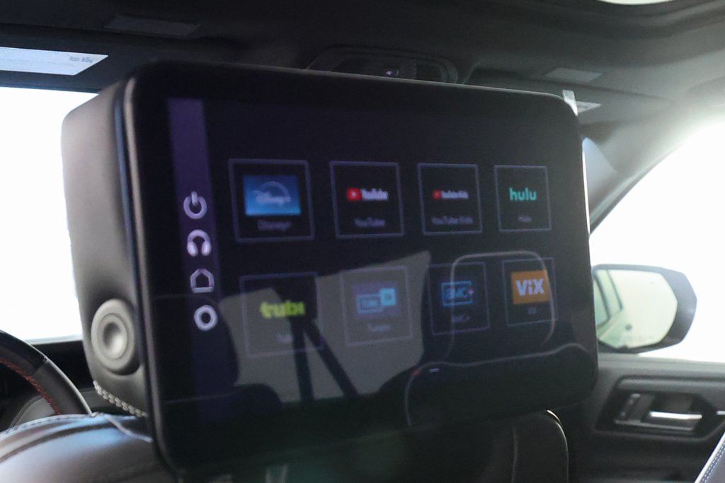 Includes dual rear seat-mounted 12.6" diagonal color-touch LCD HD screens, 2 Bluetooth headphones with 2 HDMI ports on the back of the center console.