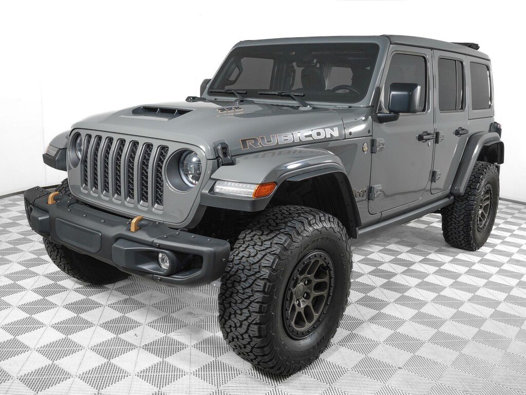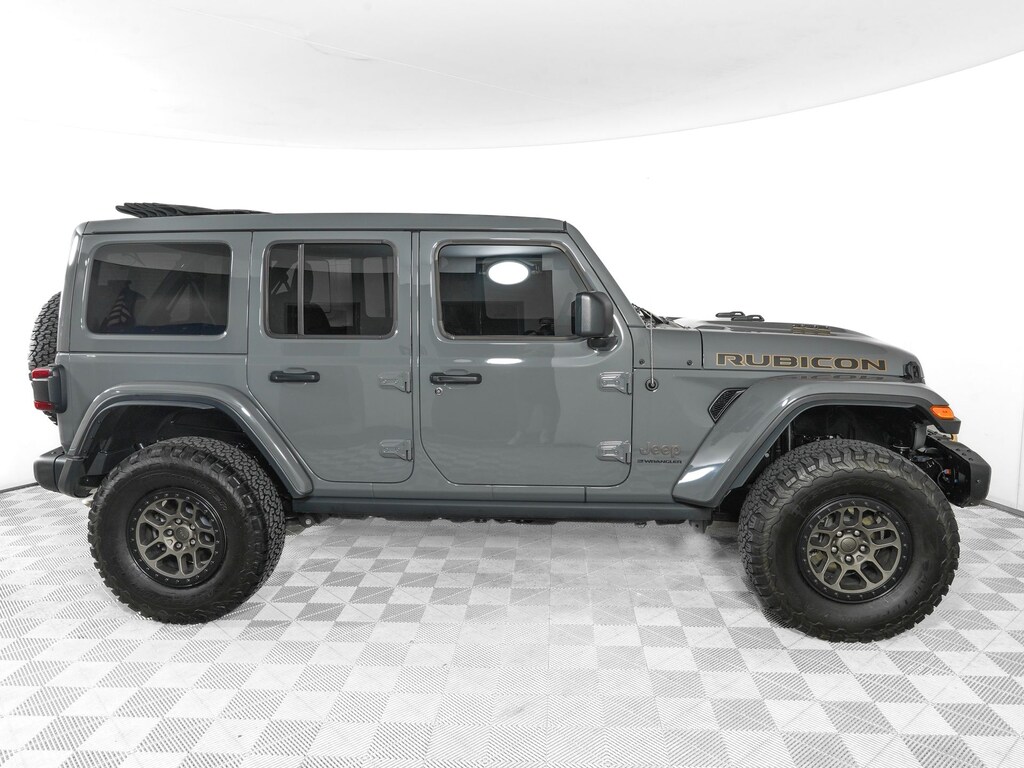 At the heart of this Rubicon 392 lies a potent SRT HEMI 6.4L V8 engine, delivering a thrilling 470 horsepower and 470 lb-ft of torque. Paired with an 8-speed automatic transmission and Jeep's legendary 4WD system, this Wrangler is primed to tackle the toughest terrain with ease. Boasting a robust Xtreme Recon 35" Tire Package, including beadlock-capable wheels and a lifted suspension, this Rubicon 392 is ready to conquer any challenge that lies ahead.