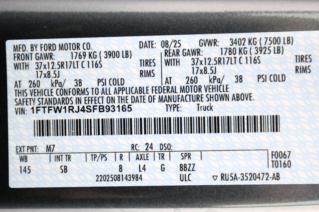 - 1FTFW1RJ4SFB93165