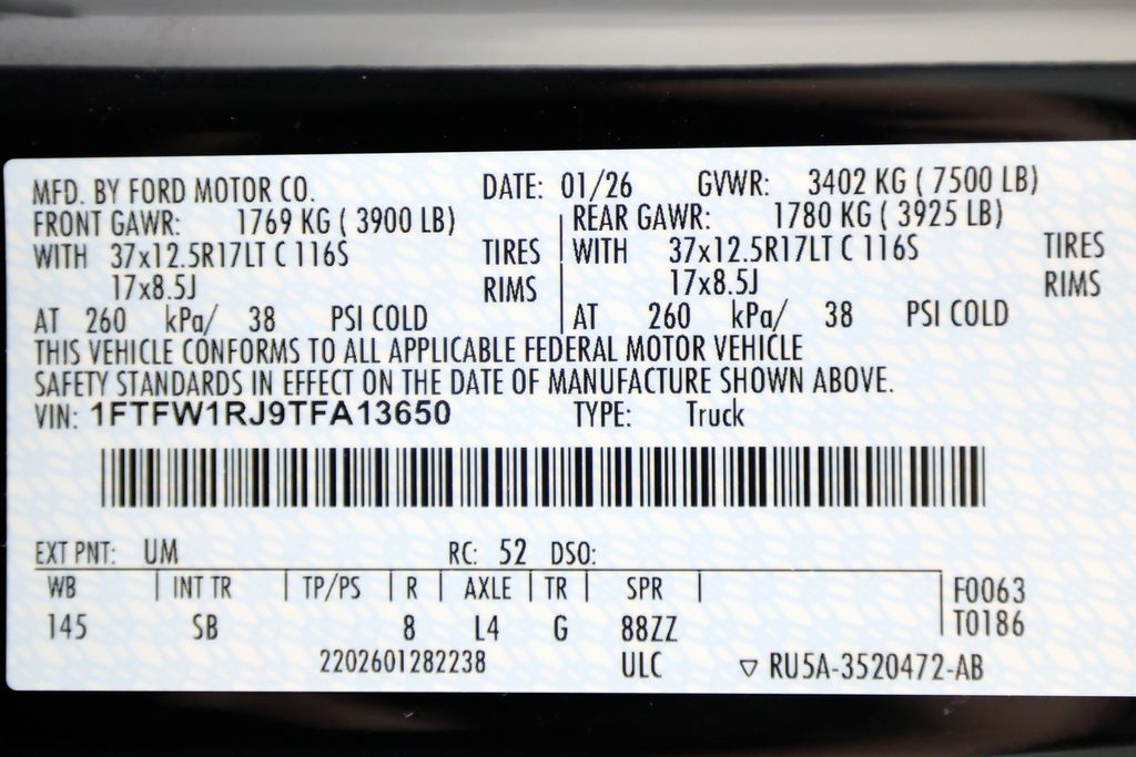 - 1FTFW1RJ9TFA13650