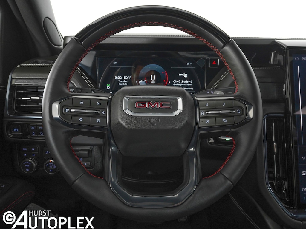 4WD, 15" Diagonal Multi-Color Head-Up Display, 18 Speakers, 3 Years OnStar One, 4-Spoke Leather-Wrapped Steering Wheel, 4-Way Power Driver Lumbar Seat Adjuster, 4-Way Power Front Passenger Lumbar Seat Adjuster, 8" Diagonal Rear Touchscreen Climate Control, Adaptive suspension, Advanced Security Package, Advanced Technology Package, Air Ride Adaptive Suspension, AM/FM radio: SiriusXM with 360L, Audio memory, Auto-leveling suspension, AutoSense Hands-Free Power Liftgate, Black Roof-Mounted Luggage Rack Side Rails, Blind Zone Steering Assist with Trailering, Body-Color Door Handles, Bose 18-Speaker Surround with Centerpoint, Bright Front and Rear Door Sill Plates, Driver 2-Way Power Upper Shoulder, Driver Attention Assist, Driver Power Massage Seat, Dual Exhaust System, Dual-Pane Panoramic Power Sunroof, Electronic Limited Slip Differential (ELSD), Enhanced Trailering Technology Package, Exterior Parking Camera Rear, Extra Capacity Cooling System, Four wheel independent suspension, Front High-Approach Angle Fascia, Front Passenger 2-Way Power Upper Shoulder, Front Passenger Power Massage Seat, Glass Breakage Sensor, Headphones, Heads-Up Display, Heated Driver and Front Passenger Seats, Heated rear seats, Heated steering wheel, Heavy-Duty Air Filter, Hill Descent Control, Hitch View, Inside Rearview Auo-Dimming Rear Camera Mirror, Integrated Trailer Brake Controller, Magnetic Ride Control Suspension, Max Trailering Package, Navigation system: GMC Connected Navigation, Night Vision, Perforated Heated and Ventilated Driver and Front Passenger Seats, Power Liftgate, Power Release 2nd Row Bucket Seats, Power Tilt and Telescopic Steering Column, Power-Retractable Assist Steps, Preferred Equipment Group 4SG, Premium Capability Package with Active Response 4WD, Radio: 16.8" Diagonal Premium GMC Infotainment System, Rain sensing wipers, Rear audio controls, Rear Seat Media System, Red Horizontal-Mounted Recovery Hooks, SiriusXM with 360L, Smart Trailer Integration Indicator, Sport Pedal Cover Kit, Super Cruise, Theft-Deterrent Alarm System, Trailer Camera Provisions, Trailering Assist Guidelines, Vehicle Inclination Sensor, Vehicle Interior Movement Sensor, Wheel Locks (set of 4), Wired Auxiliary Trailer Camera.