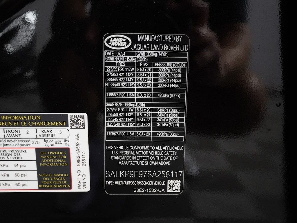 Ebony Leather, 19 Speakers, 20-Way Heated/Ventilated Electric Fr Bucket Seats, Adaptive suspension, AM/FM radio: SiriusXM w/360L, Apple CarPlay & Android Auto, Auto High-beam Headlights, Auto-leveling suspension, Driver's Seat Mounted Armrest, Electronic Stability Control, Exterior Parking Camera Rear, Four wheel independent suspension, Front Bucket Seats, Head restraints memory, Heated front seats, Heated rear seats, Heated steering wheel, Leather Shift Knob, Leather steering wheel, Meridian 3D Surround Sound System, Navigation system: Pivi Pro Connected Navigation, Perforated Windsor Leather Seat Trim, Power moonroof, Power passenger seat, Premium audio system: Meridian, Radio data system, Radio: SiriusXM Satellite & HD Audio System, Rain sensing wipers, Ventilated rear seats, Weather band radio, Wheels: 21" Diamond Turned w/Glss Drk Gry Contrast.