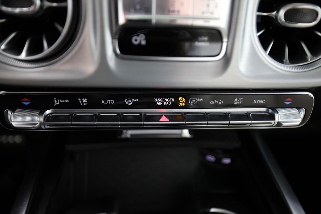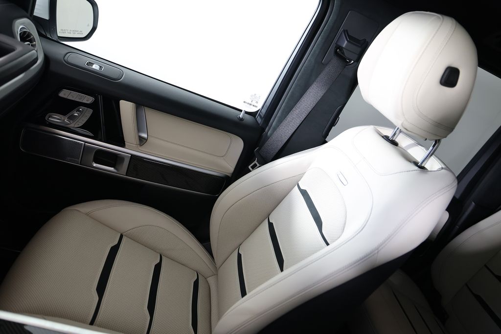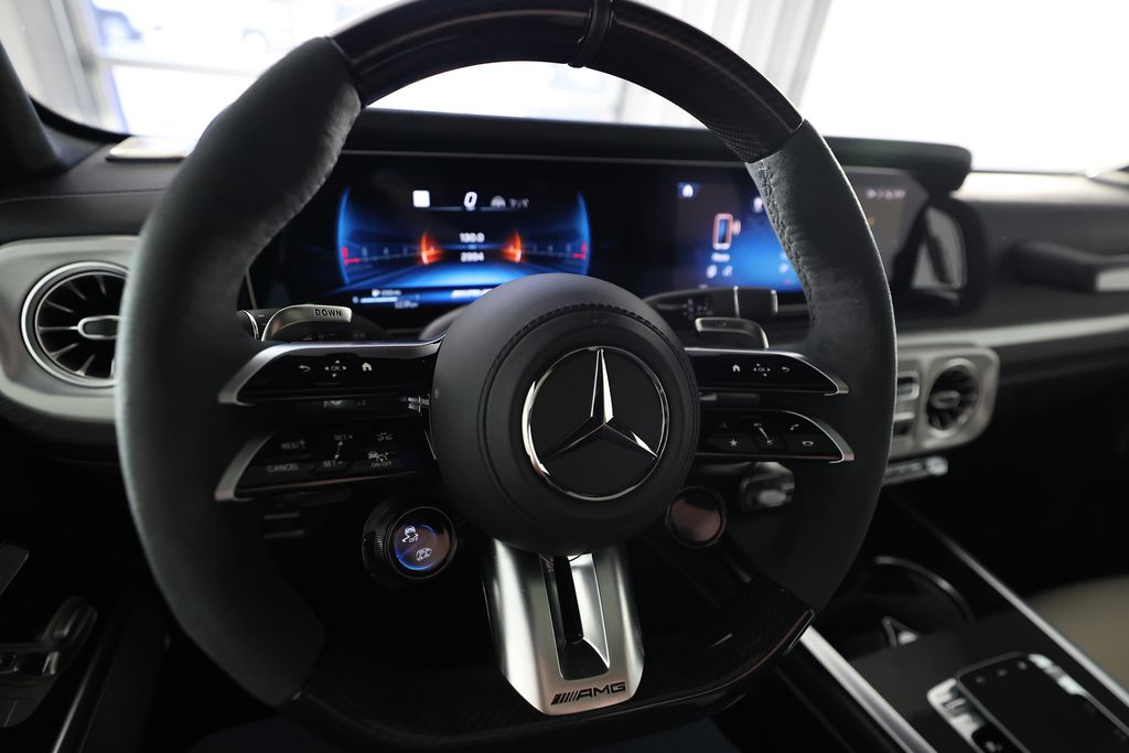 This G-Class is equipped with an impressive array of features that elevate the driving experience. The AMG® Performance Package and ENERGIZING Package Plus add dynamic handling, premium comfort, and advanced safety technologies. The MANUFAKTUR Dark Chrome Package and carbon fiber accents exude a bold, distinctive style.