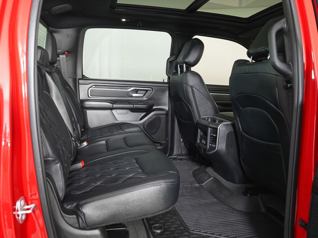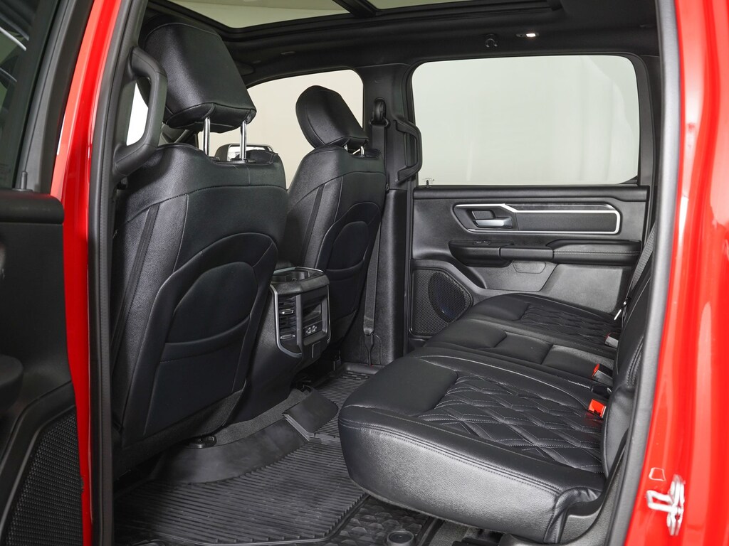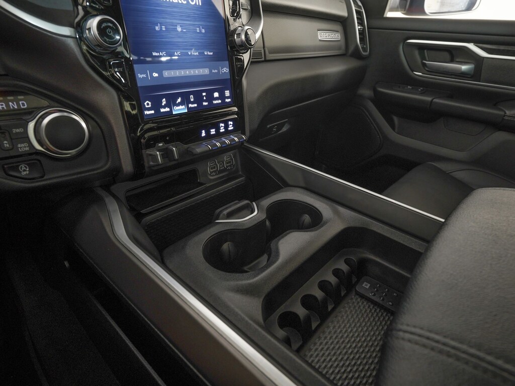 115V Auxiliary Power Outlet, 12" Touchscreen Display, 2nd Row In Floor Storage Bins, 3 Rear Seat Head Restraints, 33 Gallon Fuel Tank, 4 Way Front Headrests, 400W Inverter, 4G LTE Wi-Fi Hot Spot, 8.4" Touchscreen Display, 9 Amplified Speakers w/Subwoofer, Accent Color Door Handles, Accent Color Premium Power Mirrors, Air Conditioning ATC w/Dual Zone Control, All R1 High Radios, All Radio Equipped Vehicles, Anti-Spin Differential Rear Axle, Apple CarPlay, Auto-Dimming Exterior Driver Mirror, Auto-Dimming Rear-View Mirror, Bed Utility Group, Big Horn Badge, Big Horn Level 2 Equipment Group (DISC), Black Exterior Mirrors, Black Exterior Truck Badging, Black Headlamp Bezels, Black Interior Accents, Black Painted Exterior Mirrors Caps, Black Premium Power Mirrors, Bluetooth Handsfree Phone & Audio, Body Color Front Bumper, Body Color Rear Bumper w/Step Pads, Bucket Seats, Center Console Parts Module, Class IV Receiver Hitch, Cluster 7.0" TFT Color Display, Connected Travel & Traffic Services, Connectivity - US/Canada, Convex Wide-Angle Exterior Mirror Insert, Deluxe Cloth Bucket Seats, Disassociated Touchscreen Display, Dome Dual LED Reading Lamp, Dual Exhaust w/Black Tips, Dual-Pane Panoramic Sunroof, Electric Shift-On-Demand Transfer Case, Exterior Mirrors Courtesy Lamps, Exterior Mirrors w/Heating Element, Exterior Mirrors w/Supplemental Signals, For Details, Visit DriveUconnect.com, For More Info, Call 800-643-2112, Front Fog Lamps, Front LED Fog Lamps, Front Seat Back Map Pockets, Full Length Floor Console, Glove Box Lamp, Google Android Auto, GPS Antenna Input, GPS Navigation, HD Radio, Heated Front Seats, Heated Steering Wheel, Integrated Center Stack Radio, Integrated Voice Command w/Bluetooth, LED Footwell Lighting, LED Reflector Headlamps, LED Taillamps, Manual Adjust 4-Way Front Passenger Seat, Media Hub w/2 Charge Only USBs, MOPAR 4 Adjustable Cargo Tie-Down Hooks, MOPAR Deployable Bed Step, MOPAR Spray In Bedliner, Night Edition, Overhead LED Lamps, ParkSense Front/Rear Park Assist w/Stop, ParkView Rear Back-Up Camera, Pick-Up Box Lighting, Power 2-Way Driver Lumbar Adjust, Power 8-Way Driver Seat, Power Adjustable Pedals, Power-Folding Mirrors, Premium Lighting Group, Premium Overhead Console, Quick Order Package 27Z Big Horn, Radio: Uconnect 5 Nav w/12.0" Display, RAM Grille Badge - Black, Rear 60/40 Folding Seat, Rear Center Armrest, Rear Dome w/On/Off Switch Lamp, Rear Power Sliding Window, Rear Window Defroster, Remote Start System, Security Alarm, SiriusXM Satellite Radio, SiriusXM w/360L, Sun Visors w/Illuminated Vanity Mirrors, Universal Garage Door Opener, USB Host Flip, Variably intermittent wipers. Rocky Ridge